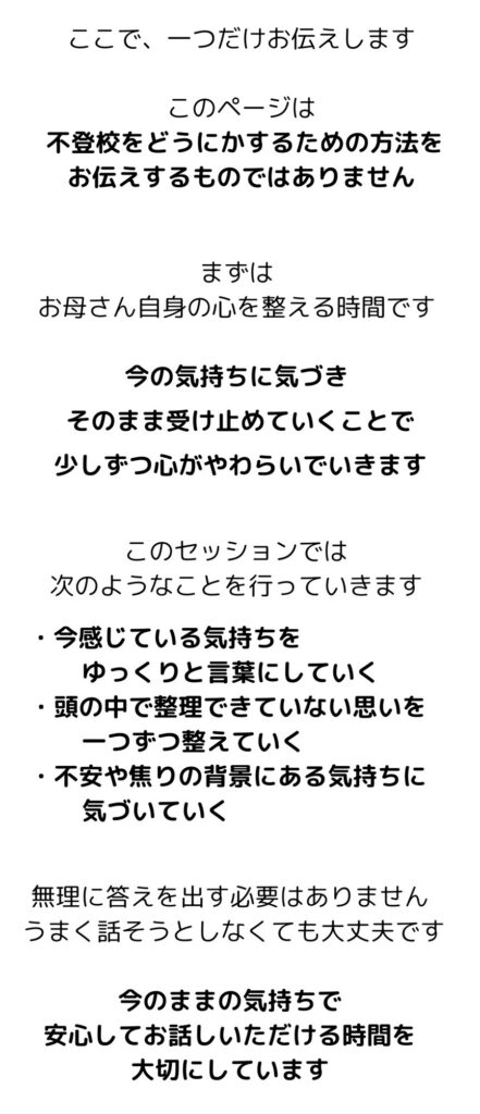 送信後、下記の《お申し込みからお試しセッションまでの流れ》《お支払い・キャンセルについて》を必ずご確認ください